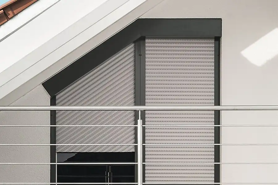 Schrägrollläden sind die maßgeschneiderte Lösung für Giebelfenster, Dreiecks‑ und Trapezverglasungen sowie schräg verglaste Eck‑ und Wintergartenfenster. Sie bieten dort den gleichen Sonnen‑, Sicht‑ und Wärmeschutz wie klassische Anlagen. Dank individuell schräg geführter Schienen lassen sich Fenster mit Neigungswinkeln von etwa 10° bis 45° komplett verschatten, auch in Kombination mit direkt angrenzenden, rechteckigen Fenstern – so entstehen optisch durchgängige Fassadenbilder bei gemischten Fensterformen. Je nach Architektur sind Vorbaukästen in runder, eckiger oder quadratischer Form möglich, die bündig in der Laibung sitzen und auch bei schrägen Giebeln, Eckverglasungen oder Balkontüren nachträglich montiert werden können. Bei der Sanierung von Altbau gibt es häufig Rundbogen oder besondere Fenster-Geometrien. Hierfür baut Weichselbaum individuelle Kästen in der firmeneigenen Werkstatt. Elektriesche Antriebe sorgen für komfortable Bedienung ohne Kurbel in hohen Giebeln und klaren Architekturen.